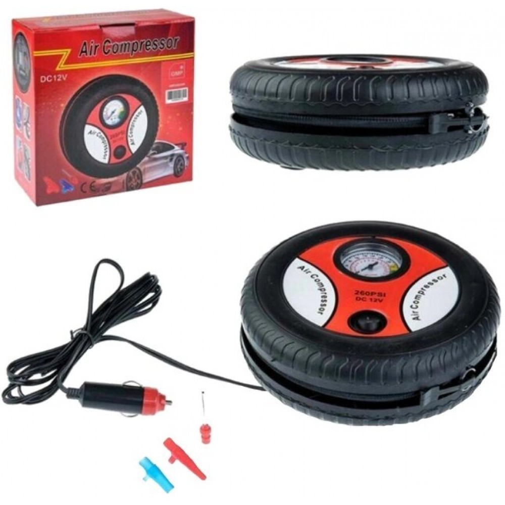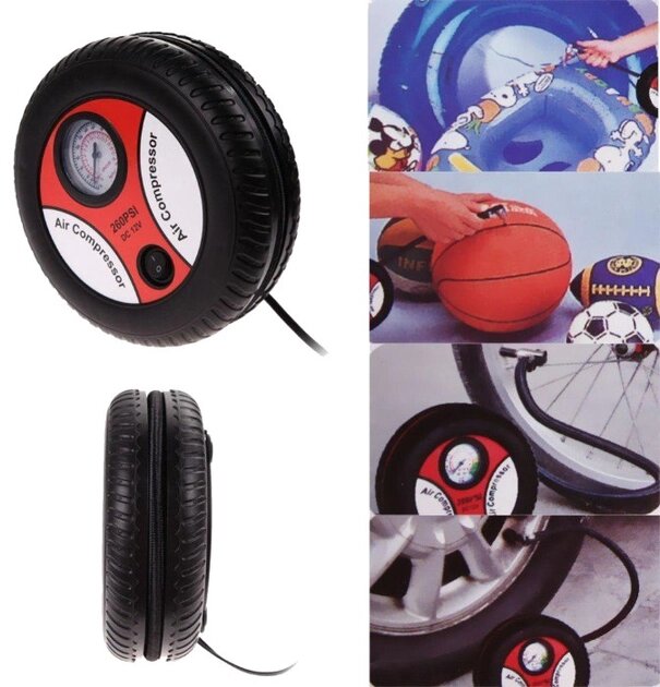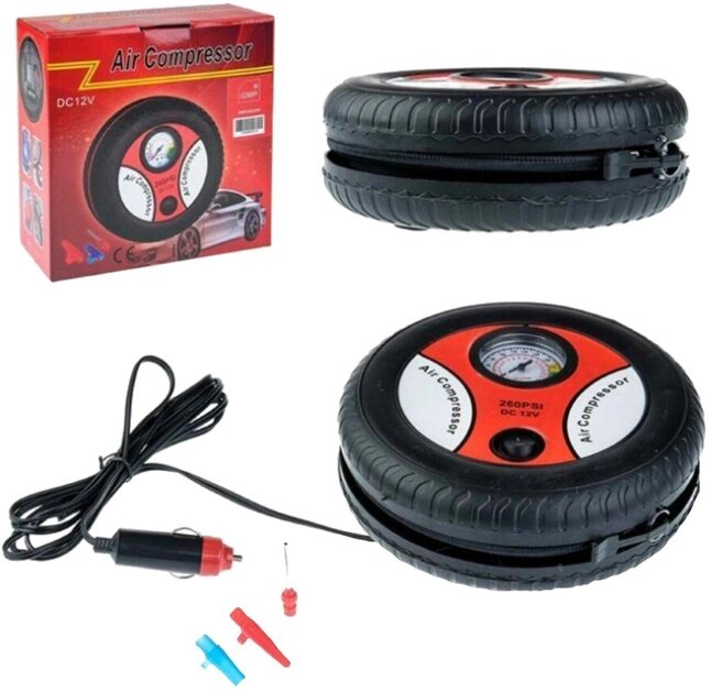 Автомобильный компрессор Air Compressor 12V 260 PSI 12V - большинство автовладельцев со временем сталкиваются с неизбежными техническими неисправностями своего транспортного средства. Самой распространенной проблемой, как правило, является — спущенное колесо. Причем происходит этот неприятный момент зачастую в неподходящее время в неподходящем месте. Конечно, можно вызвать спец работников, однако время ожидания может длиться несколько часов, что само собой долго, да еще к тому же недешево. Поэтому отличным решением проблемы будет своевременное приобретение автомобильного компрессора. Устройство оснащено тремя насадками разной формы. Их можно использовать не только для шин автомобиля, но также и для велосипедных колес, лодок, матрасов и других надувных изделий. Компрессору совершенно не требуется электричество. Работа происходит непосредственно от энергии прикуривателя, просто подключите его в необходимый разъем автомобиля. Надежный шнур аккуратно закручивается и не заламывается. Практично, удобно и быстро!