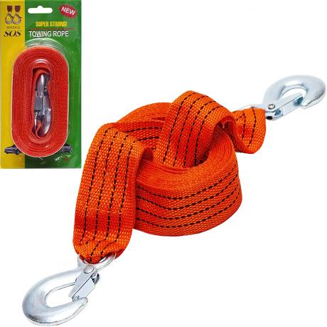 Буксирувальний трос має вантажопідйомність 3000 кг. Виготовлений з поліпропіленового строп-ланцюга. Довжина троса становить 4,5 метра, ширина — 5 см. Підходить для буксирування легкових і комерційних автомобілів. Трос забезпечує безпечне використання та зручне зберігання.