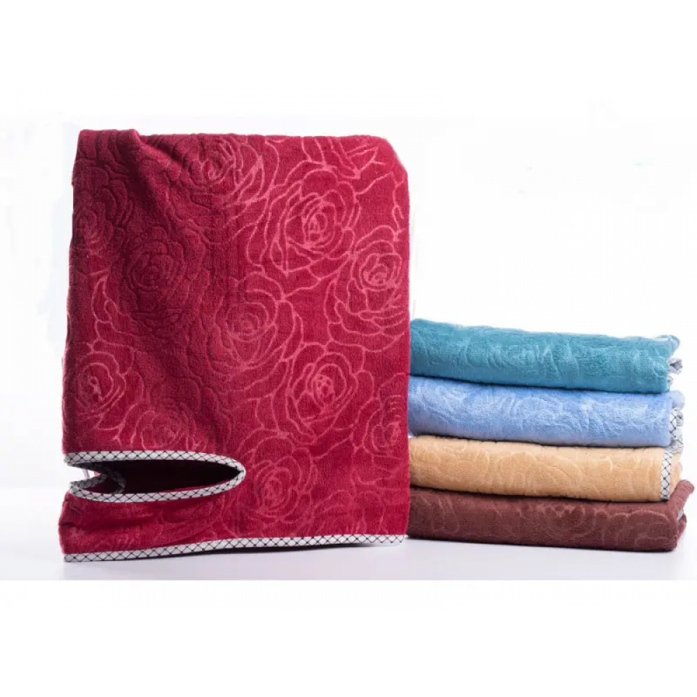 Полотенце банное 70*140см Микрофибра Плотная полированная с вышитыми красными сердечками