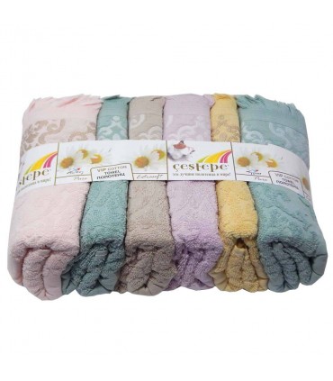 Банное полотенце Cestepe jakarli sacakli 70*140, турецкого производства изготовлено в соответствии европейских стандартов высокого качества. В состав текстиля входит 100% натуральное хлопковое волокно высочайшего качества. Ткань исполнения – двухсторонняя петельчатая махра, поверхность жаккардовая. Коллекция представлена нежными оттенками голубого, розового и других цветов. Жаккардовая поверхность в виде вензелей смотрится очень изыскано, полотенце украсит любой интерьер и добавит особый шарм. Изделие украшено изящным бортиком с вышивкой, края обрамлены бахромой. Красивое и нарядное полотенце, создаст атмосферу тепла и домашнего уюта, будет выполнять не только своё прямое назначение, но и приносить эстетическое удовольствие своему обладателю.