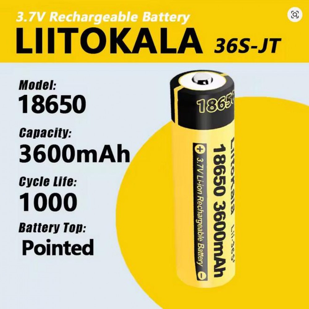 Аккумулятор 18650, LiitoKala 36S-JT, 3600mAh, ОРИГИНАЛ