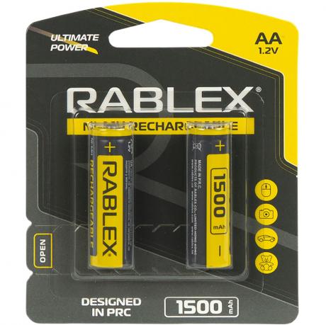 Акумулятори RABLEX АА 1500, на блістері 2 шт. Мінімальна робота1500 mAh. 1,2 V