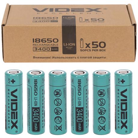 Акумулятор VIDEX Li-Ion 18650-P без захисту має ємність 3400mAh. Цей літій-іонний акумулятор може використовуватися в переносних ліхтариках, бездротових електричних інструментах, медичних приладах, переносних зарядних пристроях і акумуляторних батареях ноутбуків, а також в малогабаритних транспортних засобах. Максимальна напруга при повному зарядженні становить 4.2В ± 0.03В, а мінімальна напруга при повному розрядженні - 2.75В. Стандартний струм заряду і розряду - 0.2С * А. Максимальне навантаження до спрацьовування запобіжника -3С * А. Для збільшення терміну служби рекомендується підтримувати заряд на рівні від 20% до 80% ємності.