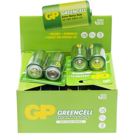 Батарейка GP GREENCELL 1.5V сольова, 13G-U2, R20, D GP-000089. На блистере 2шт