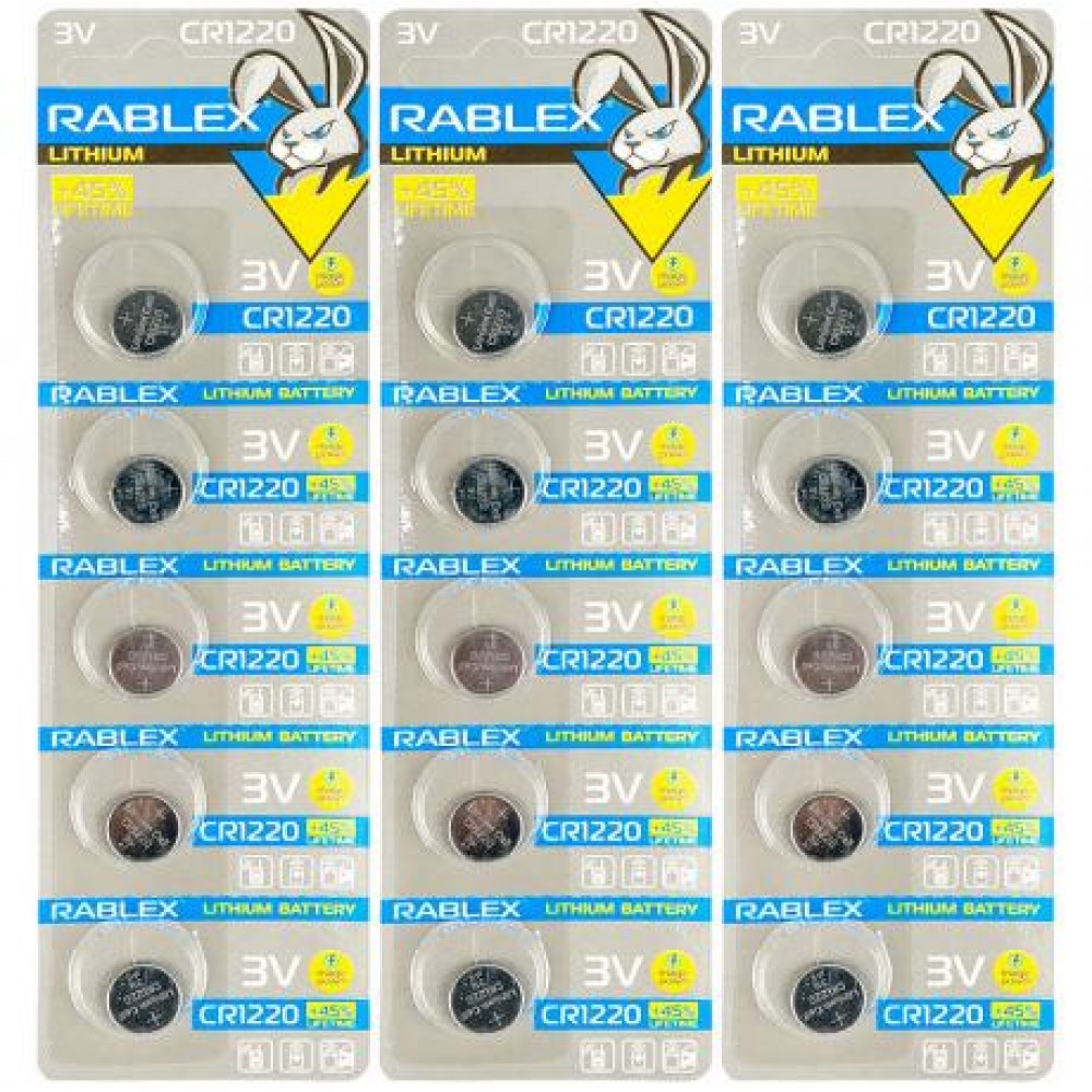 Якісні літієві батарейки формату CR1220 від бренду Rablex у зручній упаковці по 5 штук. Забезпечують стабільне живлення електронних пристроїв та мають збільшений на 45% термін служби.