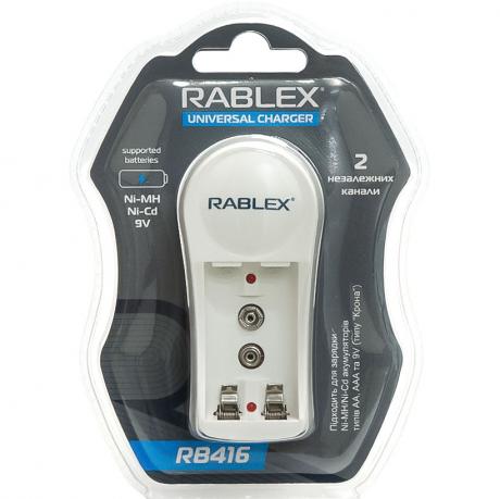 Універсальний зарядний пристрій Rablex призначений для заряджання акумуляторів типів Ni-MH та Ni-Cd форматів AA, AAA та 9V («Крона»). Оснащений двома незалежними каналами, що дозволяє одночасно заряджати різні типи акумуляторів.