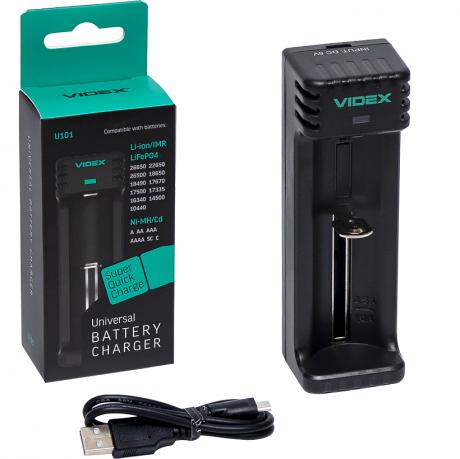 Зарядний пристрій для акумуляторів розміром A/АА/ААА/AAAA/C/SC .Призначений для швидкого і безпечного заряду акумуляторів типу li-ion,Ni-MH and Ni-Cd.Осначений системою контролю, що робить процес заряду повністю автоматичним.Автоматичне визначення несумісних або несправних акумуляторів.. Світлодіодна індикація вразі невірного встановлення акумулятора.Захист від перезаряду, короткого замикання та невірної полярності. Вхід:Micro USB DC 5V/1A Вихід: DC 1.48V 500mA Ni-MH/Cd; DC 4.2V 500mA/1000mA Li-ion. В комплекті кабель USB Розмір: 100х32х29мм.