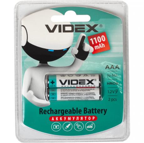 Акумулятори VIDEX AAA 1100, в упаковці 2 шт. Нікель-метал-гібридні акумулятори з ємністю 1100 mAh. Напруга 1,2 V.
