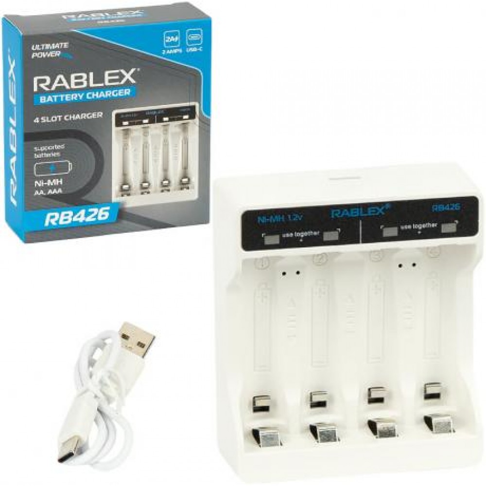 Rablex RB426 — сучасний зарядний пристрій, призначений для одночасної зарядки акумуляторів Ni-MH типорозмірів AA та AAA. Модель вирізняється компактним дизайном і зручністю у використанні, що робить її оптимальним вибором як для домашнього, так і для професійного застосування.