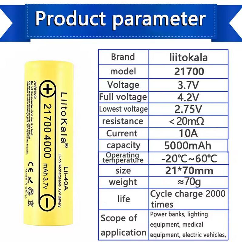 Аккумулятор 21700, LiitoKala Lii-40A, 4000mAh, ОРИГИНАЛ
