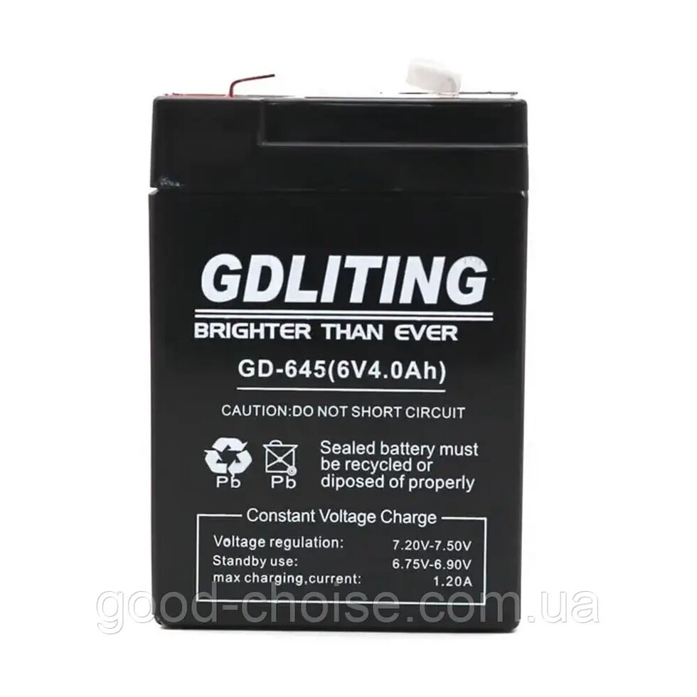 Новая модель аккумулятор 6v GD-645, для различного вида продукции такого как электронные весы, детские автомобили, фонари, системы охраны, сигнализации, и другие виды где необходим источник питания 6v. Производитель GDLite давно известен на рынке своим качественным товаром, а значит ваш прибор будет оснащаться качественным продуктом.