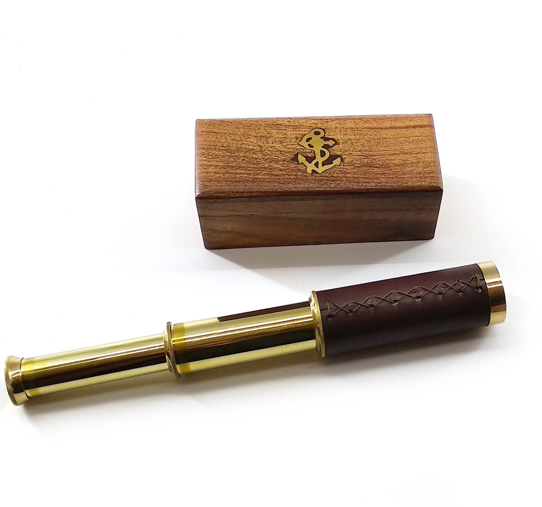 Подзорная труба в деревянном футляре (труба 23,5 см футляр 13х5х5,5 см)A