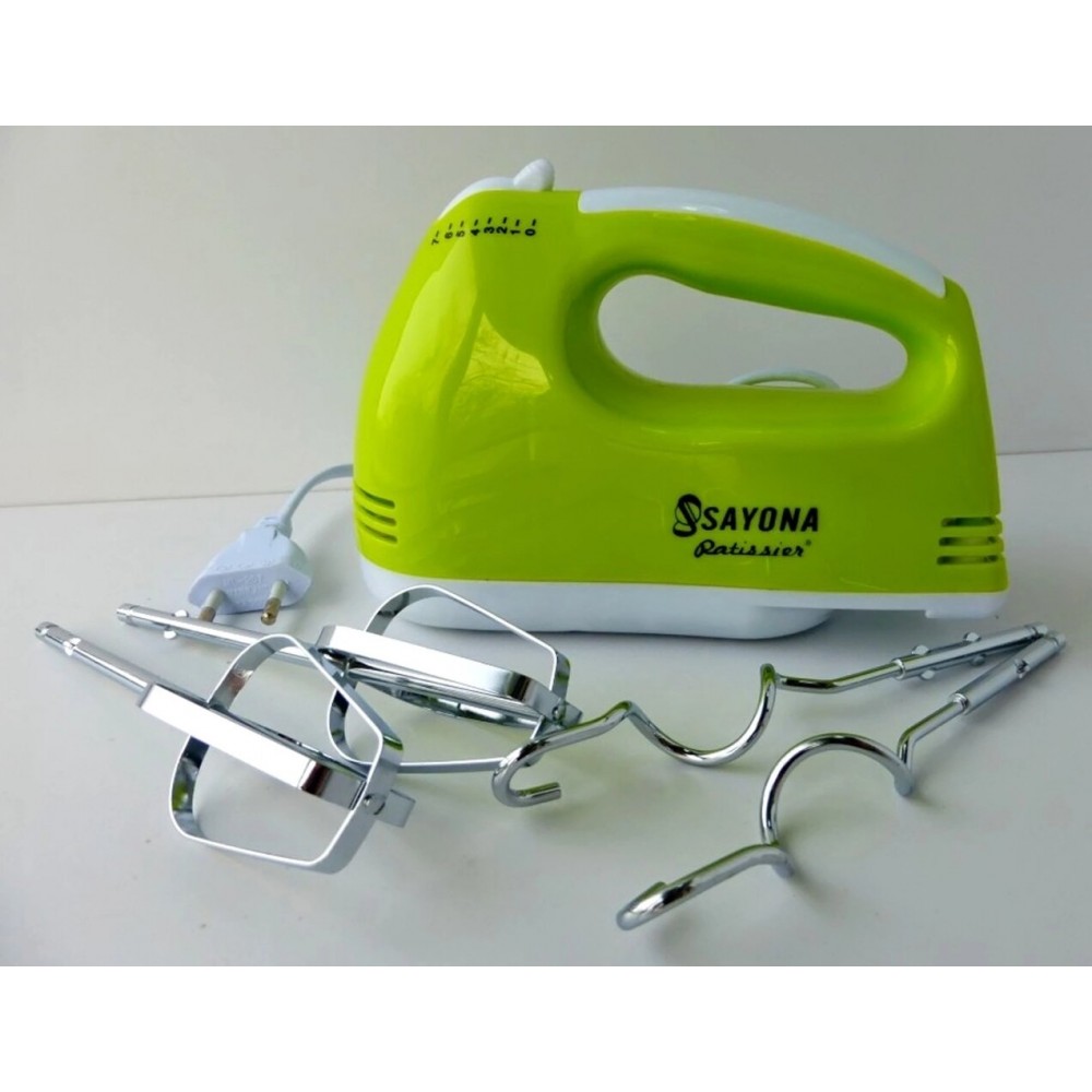 Миксер Sayona Szj-lh133, 300ВтМиксер Sayona Szj-lh133- имеет 7 скоростных режимов с переключателем скоростей.Насадки для взбивания из нержавеющей стали.Насадки для замешивания теста из нержавеющей стали.Удобная кнопка разблокировки насадок.Стильный дизайнХарактеристики:Тип миксера: ручнойМощность: 300 ВтНасадки: для замешивания теста; для взбиванияНазначение скоростей миксера:1 скорость. Соединение компонентовПриготовление соусов, пудингов, теста для булочек, оладьей.2 скорость. Смешивание.Смешивание жидких и сухих ингредиентов, яичных белков, взбитых сливок3 скорость. ВзбалтываниеПриготовление жидкого теста и смесей4 скорость. Взбивание.Смешивание мала с сахаром, приготовление теста для печенья, смесей для пирожных и глазурей.5 скорость. Взбивание.Получение жидкого однородного теста6 скорость. ВзбиваниеПолучение масс, подобных сахарной глазури7 скорость. Взбивание в пенуЦвета корпуса миксера могут быть разными