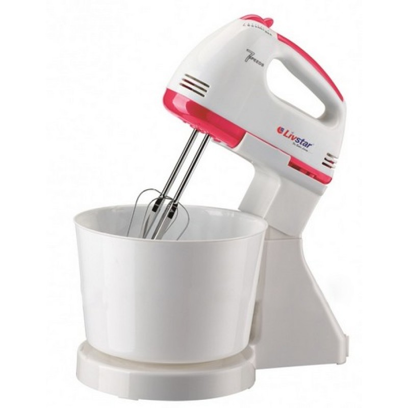 Миксер с чашей LIVSTAR LSU-1438 - это хорошая покупка преимущественно для домашнего умеренного использования, а также может быть хорошим подарком. Эта модель миксера обязательно будет необходимой практически для каждой хозяйки. Применение такого кухонного прибора, в последнее время имеет довольно таки широкое распространение. Так, например, с его помощью можно за считанные минуты взбить белки для глазури, а также замесить пышное тесто или густое в зависимости от вашего желания. Миксер LIVSTAR LSU-1438 имеет небольшую мощность в 150 Вт, чего вполне достаточно для щадящей эксплуатации. Немного потраченного времени, запас терпения и результат не заставит себя долго ждать. Итак, в стандартной комплектации для этого имеются специальные съёмные насадки двух видов. Работать устройство может в 7 разных режимах, то-есть на 7 разных скоростях. Благодаря наличию большой чаши для смешивания объёмом в 3 литра можно за один раз замесить довольно-таки большое количество теста. Данная модель проста в использовании и уходе. Ещё одним её достоинством является доступная цена, умеренное качество. Особенности Венчики для взбивания Насадки для замеса теста Съёмная чаша Характеристики Количество скоростей: 7 Материал корпуса: Пластик Потребляемая мощность, Вт: 150 Тип: Миксер с чашей Материал чаши: Пластик Набор насадок: 2 Назначение: Ручной миксер для смешивания, взбивания пищевых ингредиентов Объем чаши, л: 3