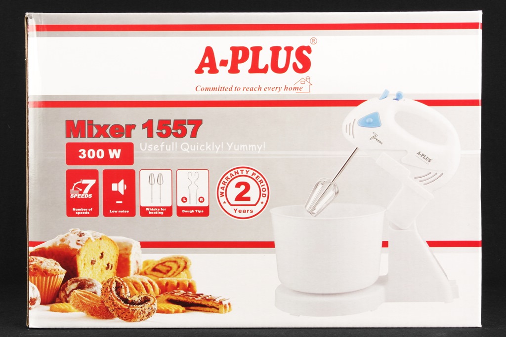Ручной миксер ТМ A-PLUS оборудован мотором, мощность которого составляет 300 Вт !!! Это позволяет легко взбивать яйца, сливки, соусы, жидкое тесто и т.д. В комплекте с миксером помимо стандартных насадок в виде венчиков для взбивания и крюков для теста прилагается стационарный корпус, что позволяет освободить руки. Ручной Миксер с чашей ТМ A-PLUS по достоинству оценят хозяйки, которые любят радовать свою семью домашней выпечкой.