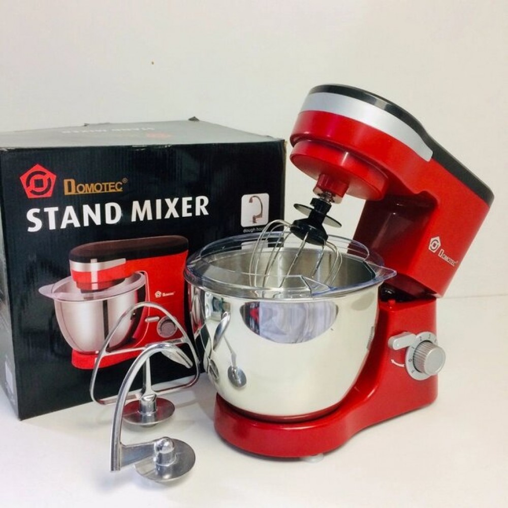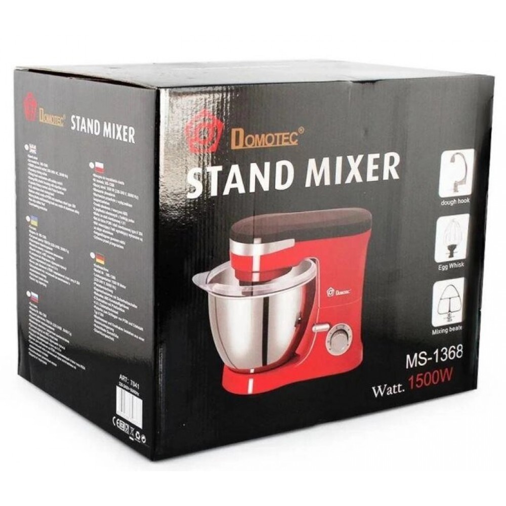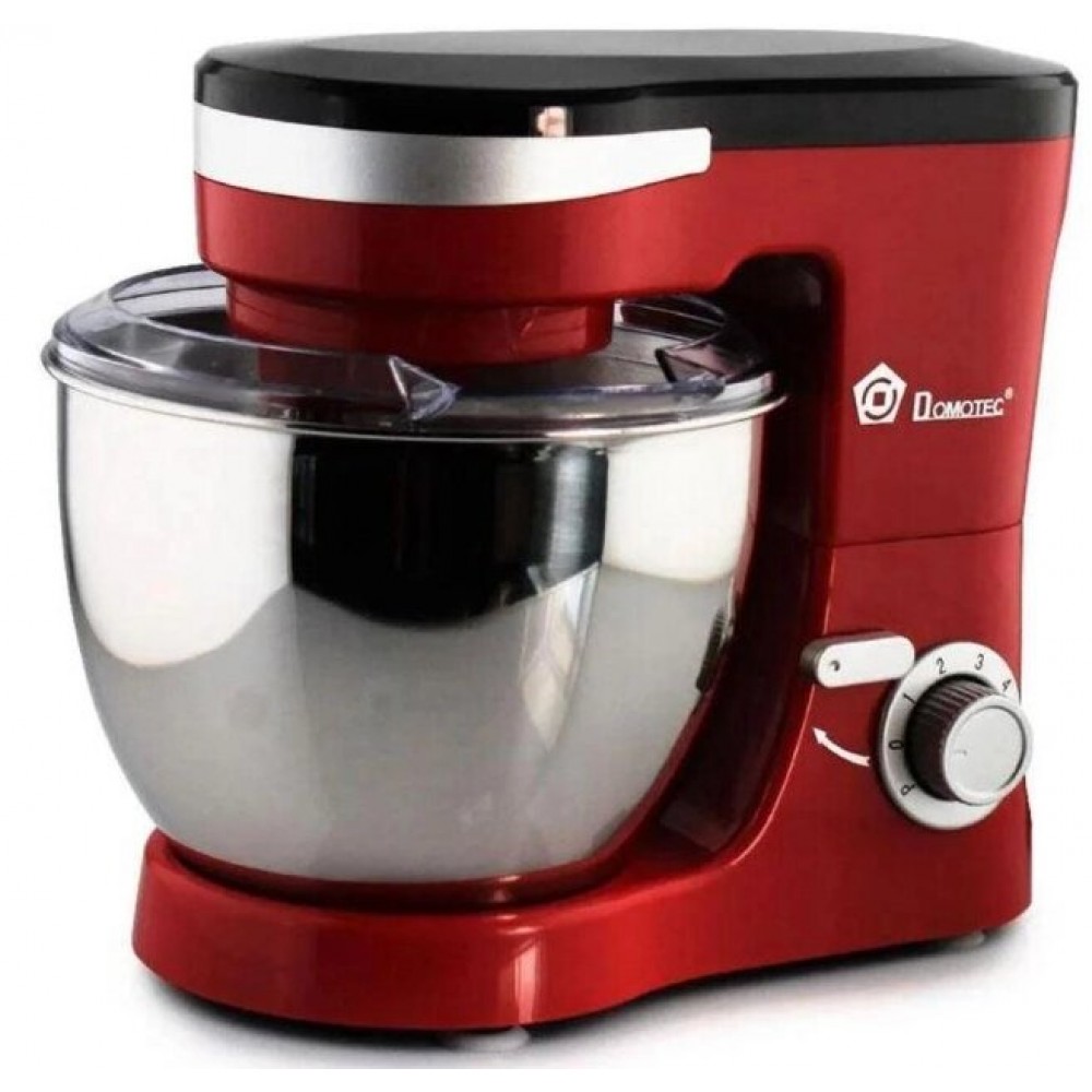 Миксер-тестомис планетарный Domotec MS-1368 на 6 скоростей 3 насадки чаша 4 л 1500W Красный