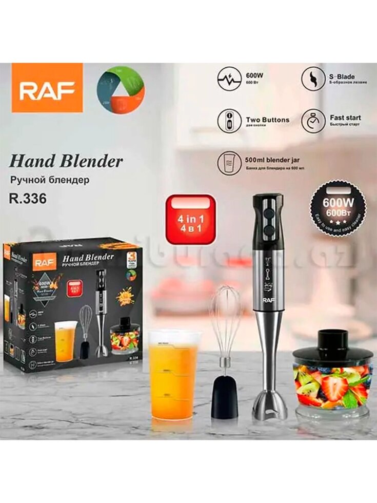 Погружной блендер домашний 0.5л кухонный ручной миксер измельчитель RAF R. 336 4в1 600Вт Черный