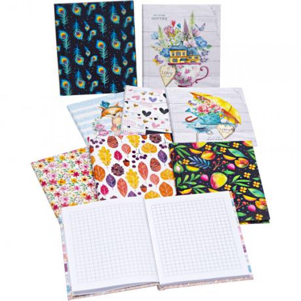 Блокнот 104х124 мм, 64 аркуша, папір офсет 56 г/м2, у клітку. Обкладинка повнокольорова Тверда Інтегральна з Матовою ламінацією, з Вибірковим УФ-лаком. Форзац повнокольоровий.