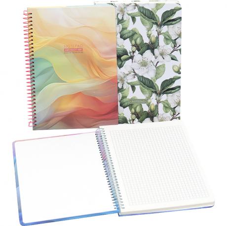 Блокнот А5, 80 аркушів, 60г/м2,блок у клітинку.Тверда обкладинка на СПІРАЛІ (одинарна МЕТАЛЕВА спіраль, товщина дроту 1,2 мм). Повнокольоровий друк 4+0 і матове ламінування. Друк на аркушах папір кольору айворi, друк 1+1 (клітинка #).