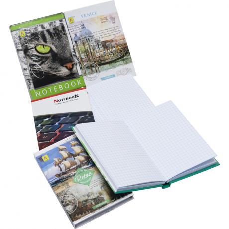 У твердій палітурці, 10х14,5см, папір офсет 144 аркушів, картинки асортименті.