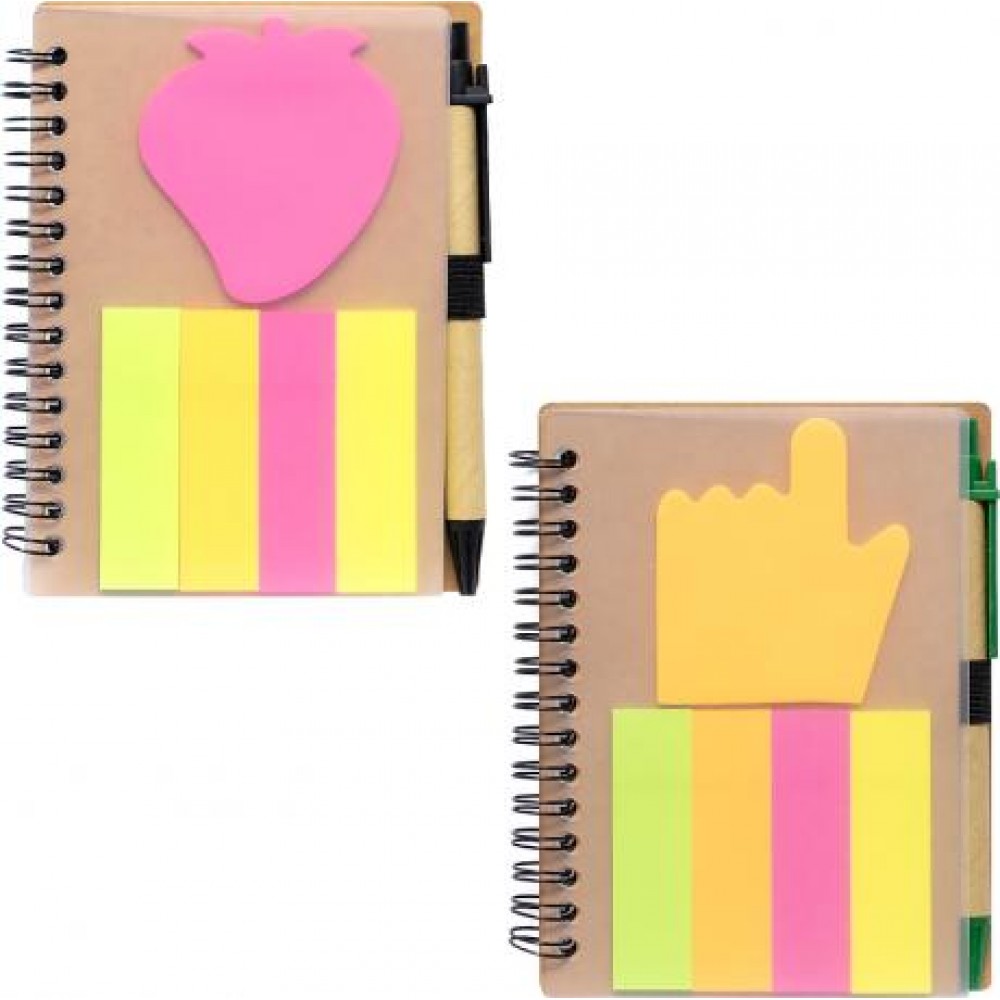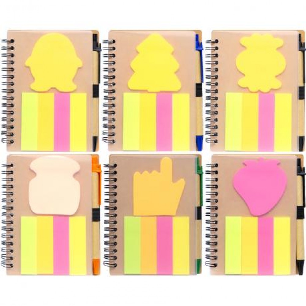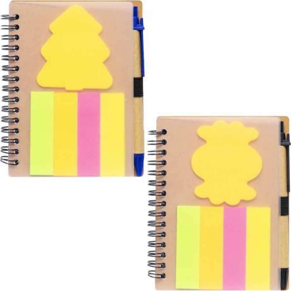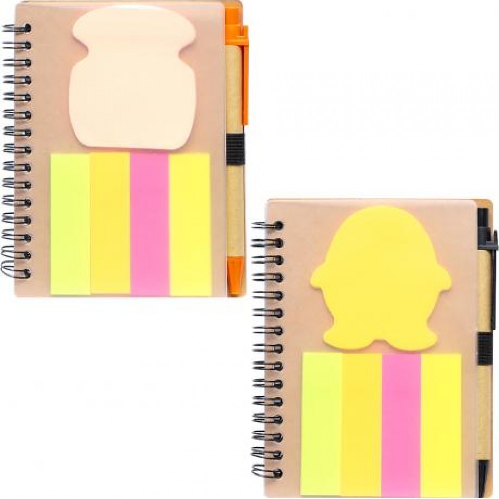 Блокнот 64аркуша на спіралі з кульковою ручкою (синій колір чорнила) та набором паперових стікерів, білий лист у лінію, формат А6(14,5*11см)