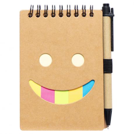 Блокнот 64листа на спирали с шариковой ручкой (синий цвет чернил) и набором бумажных стикеров, белый лист в линию, форматА6 ( 13,5*10,5см)