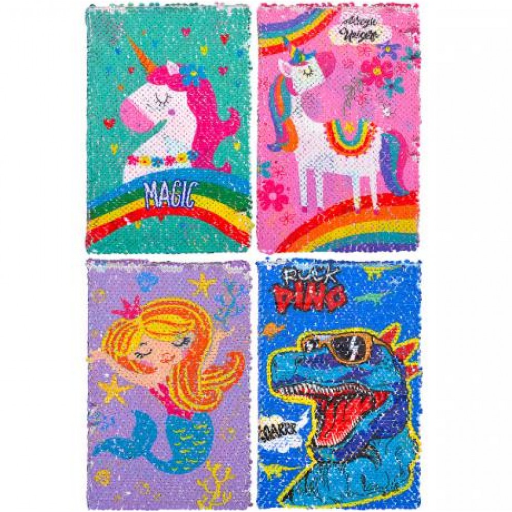 Блокнот с пайетками 21*14,5 см "Двухсторонняя картинка" А-8 тв.обк., клетка А-8/A-6
