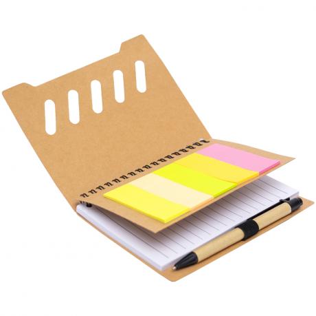 Блокнот 64аркуша на спіралі з кульковою ручкою (синій колір чорнила) та набором паперових стікерів, білий лист у лінію, формат С6( 16*12,5см)