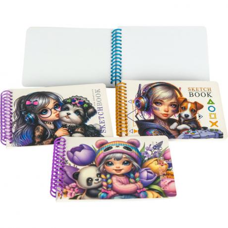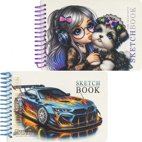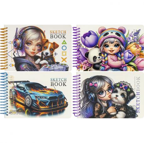 Скетчбук формату А6, 24 арк., Папір 100g/m2 БІЛОГО кольору, без друку (ЧИСТІ АРКУШІ).Обкладинка з картону 350g/m2 на СПІРАЛІ (одинарна ПЛАСТИКОВА спіраль, товщина дроту 2мм, діаметр кілець 1,3см) Повнокольоровий друк 4+0 та матова ламінація. Індивідуальне пакування кожної позиції товару в прозорий пакет зі стікером