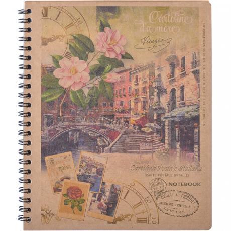 Блокнот у картонній обкладинці на спіралі. Спіраль збоку. Формат: В5. 80 аркушів в клітинку. Колір паперу: кремовий. Щільність 60г / м². Обкладинка: щільний коричневий крафт-картон 0,6 мм. Колір обкладинки: мікс