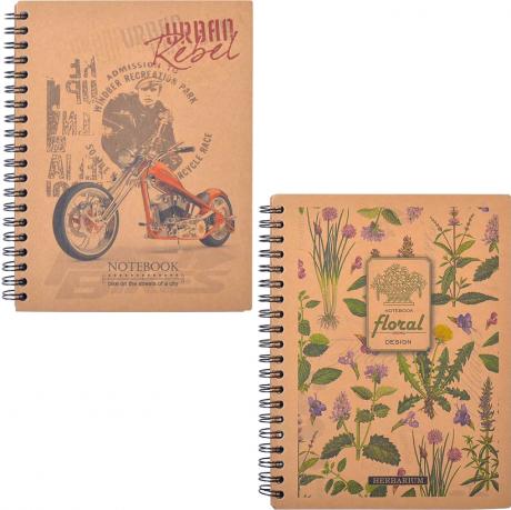 Книжка записна в картонній обкладинці з перфорацією на спіралі. Спіраль збоку. Формат: В6. 96 аркушів в клітинку. Колір паперу: кремовий. Щільність 60г / м². Обкладинка: щільний коричневий крафт-картон 0,6 мм. Колір обкладинки: мікс