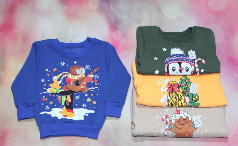Детский теплый джемпер с новогодними гравировками