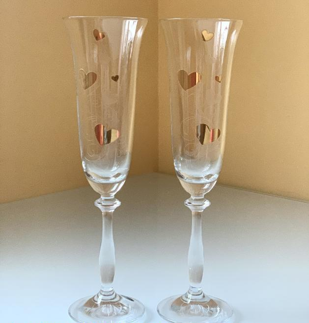 Набор Bohemia Angela из 2-х свадебных бокалов для шампанского, объёмом 190мл. В подарочной упаковке. Оригинальный золотой деколь в форме сердец, подчеркнет изысканность бокалов для свадьбы.