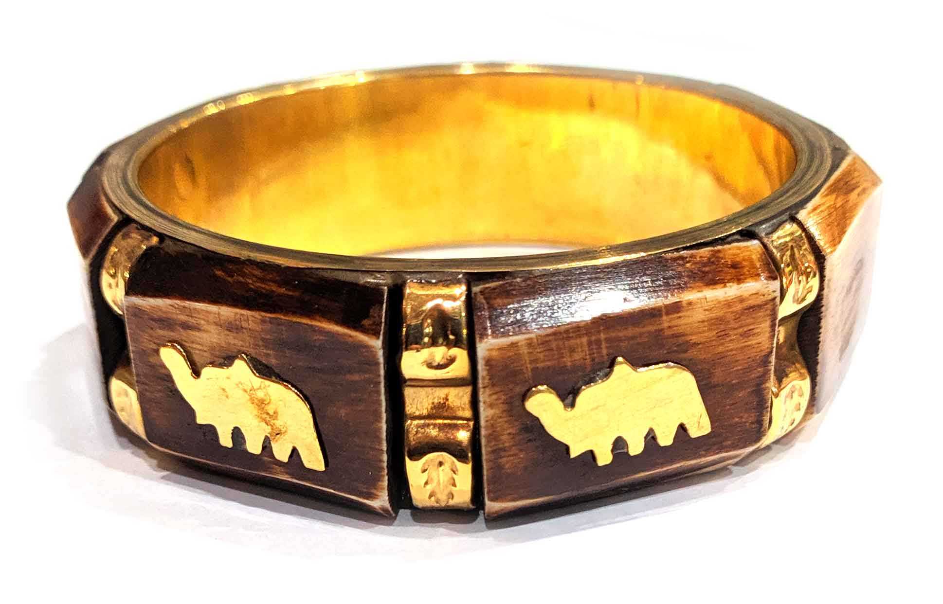 Браслет бронзовый с эмалью и гравировкой Слоны красный (d-7,8 ; 6,5. h-3 см)