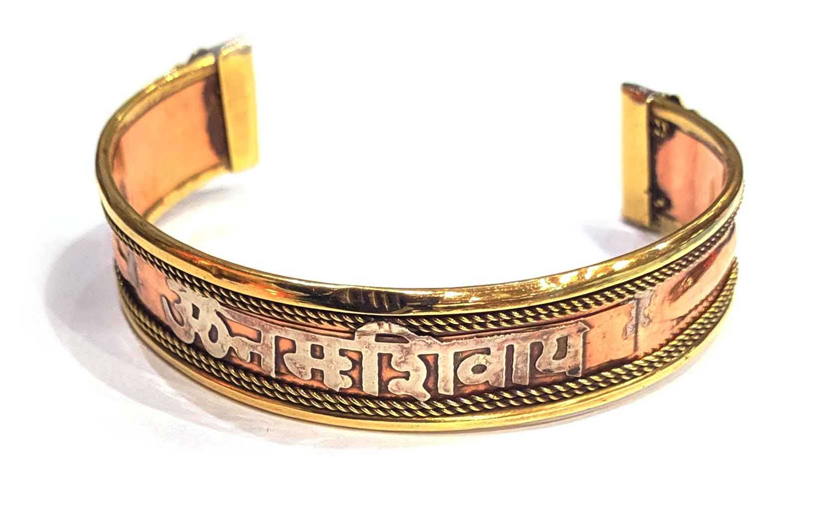 На браслете изображена мантра "Ом Мани Падме Хум" (ом मणि पद्मे हूँ), которая написана на деванагари — алфавите, который используется в санскрите и многих индийских языках.