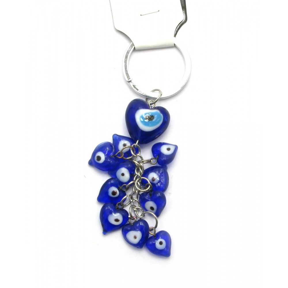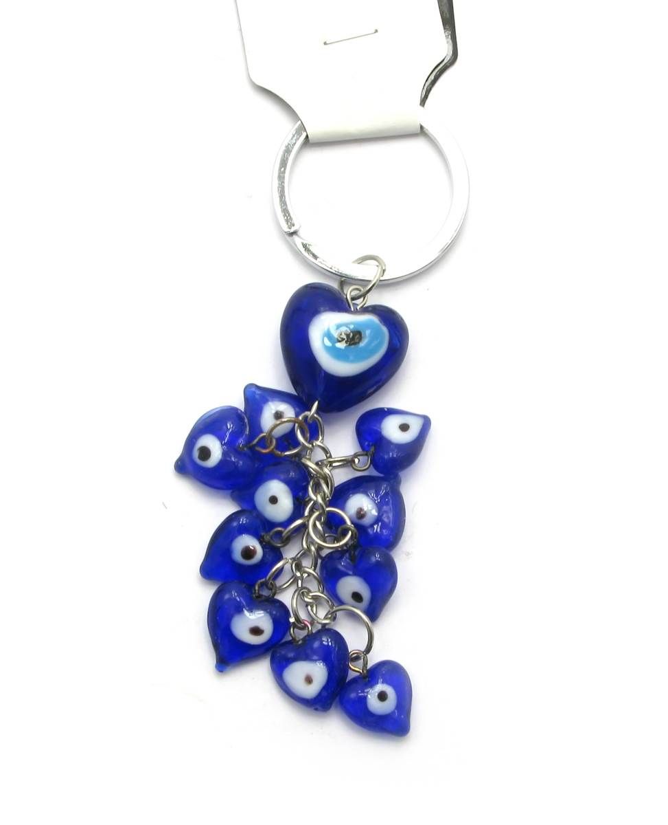Брелок оберег в форме сердечек с амулетом от сглаза. С помощью металлического кольца брелок можно повесить на ключи, сумку или рюкзак.