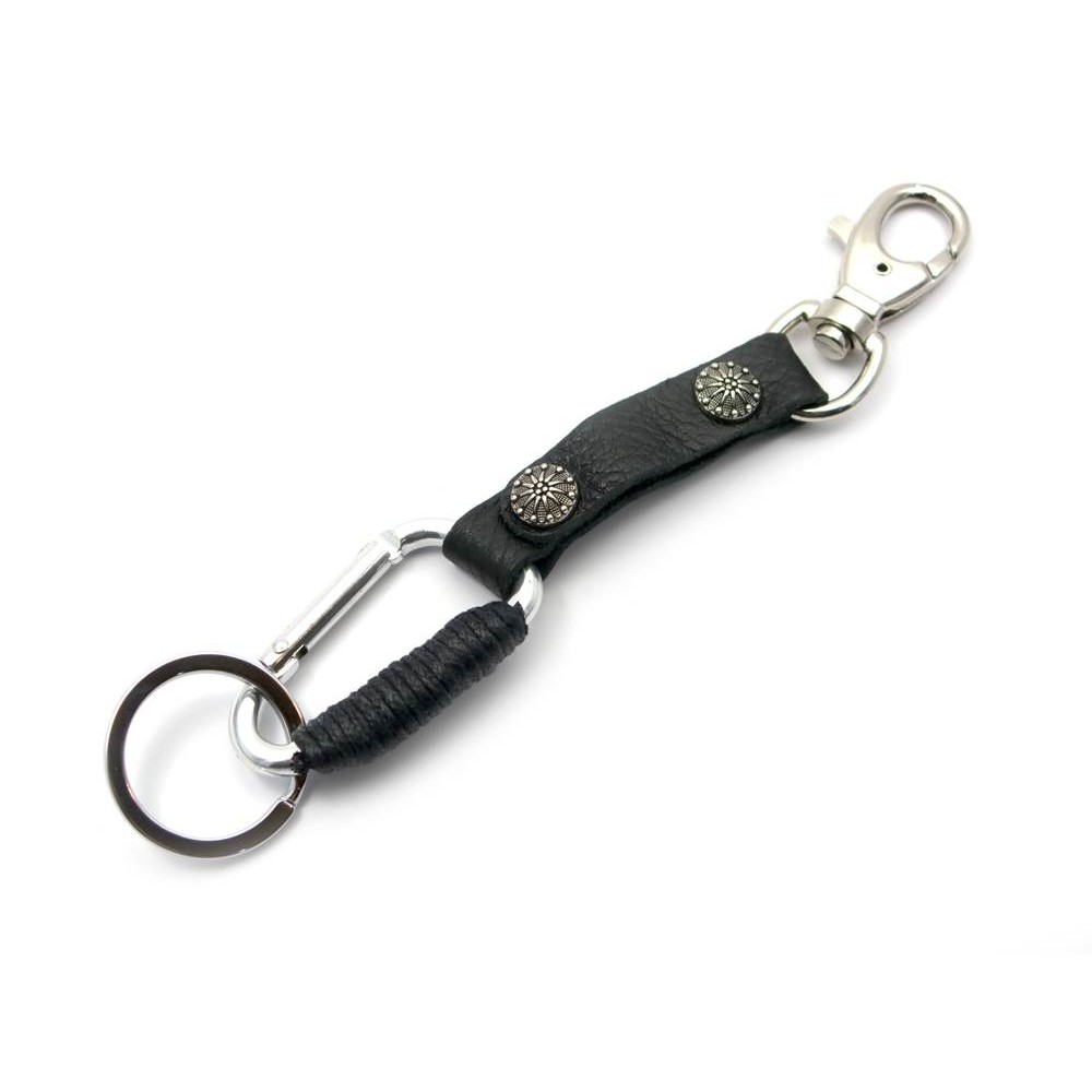 С одной стороны крепкий и удобный карабин и большое кольцо для ключей, с другой стороны карабин меньше размером.
