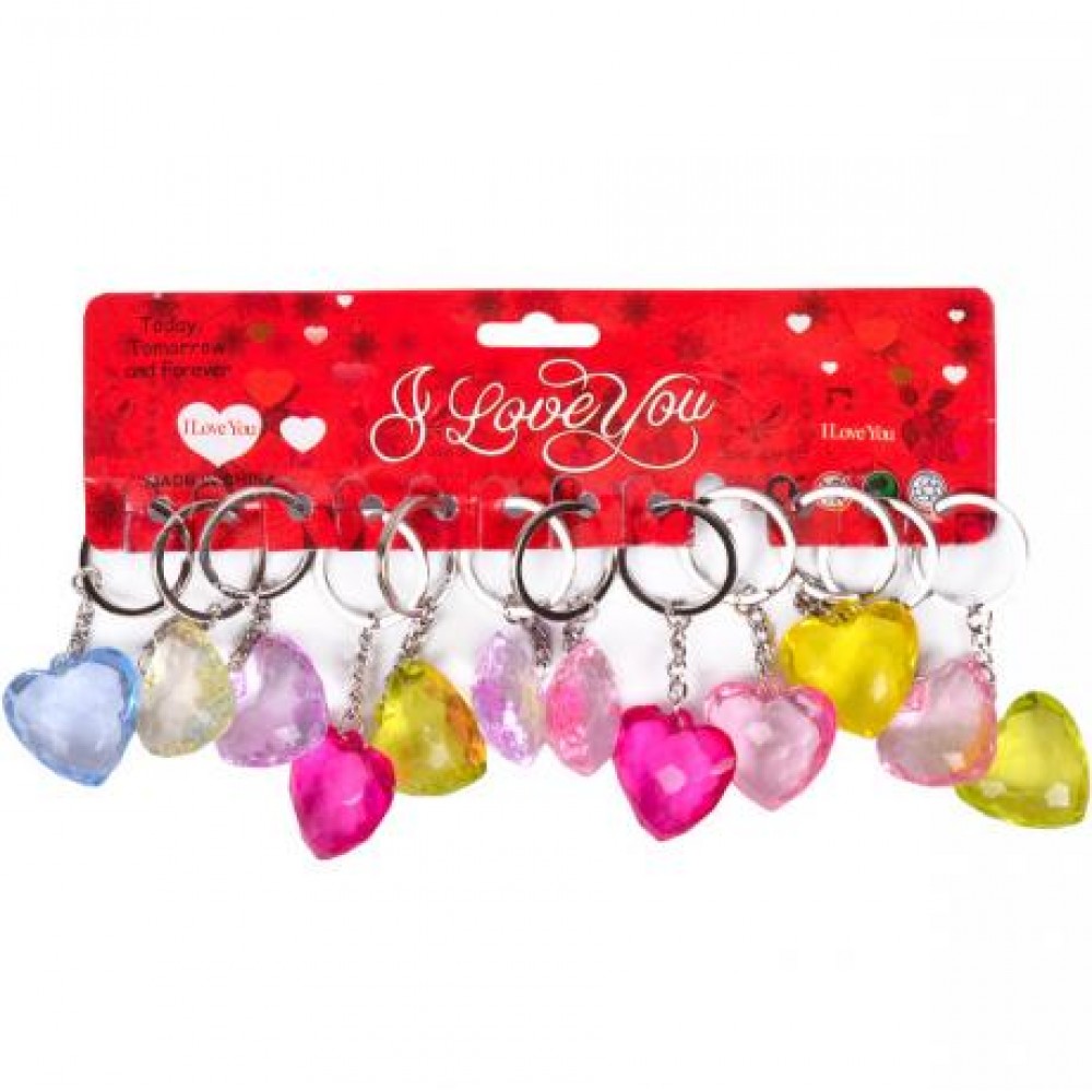 Брелок пластиковий об'ємний у вигляді серця . Розмір 3,5*3,5см. На блістері 12 штук.
