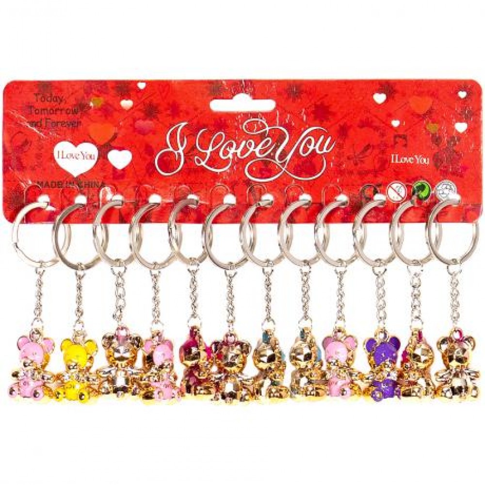 Брелок пластиковый в виде мишки с рисунком - сердечко . Размер: 3,5*2,5 см. На блистере 12 штук.