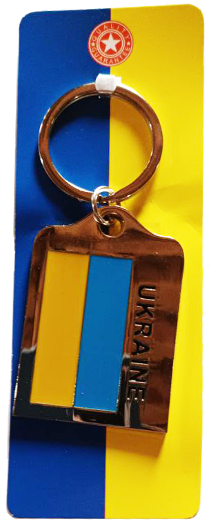 Металлический брелок с патриотическим дизайном и символикой. Описание Брелок выполнен в форме прямоугольника с закругленными краями. На лицевой стороне изображены вертикальные полоски в цветах украинского флага (желтый и синий) и надпись Ukraine. Материал: прочный металл, стойкий к царапинам и коррозии. Упаковка оформлена в желто-синих цветах флага Украины. Применение: Подходит для использования в качестве стильного аксессуара для ключей, рюкзаков или сумок. Прекрасный сувенир или подарок для любителей Украины и туристов.