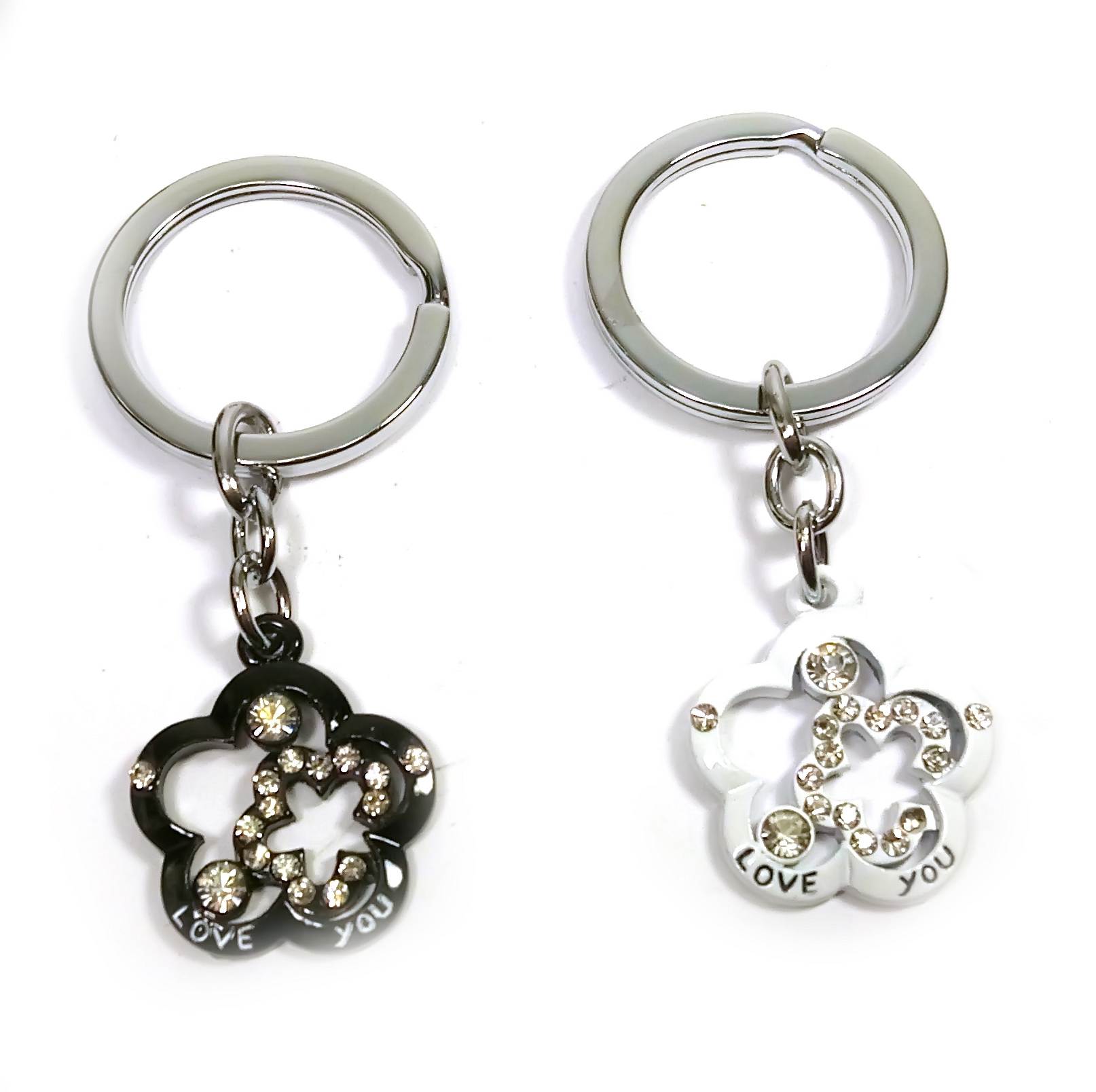 Брелоки для влюбленных (Q) Цветочки бело-черные код 24542C