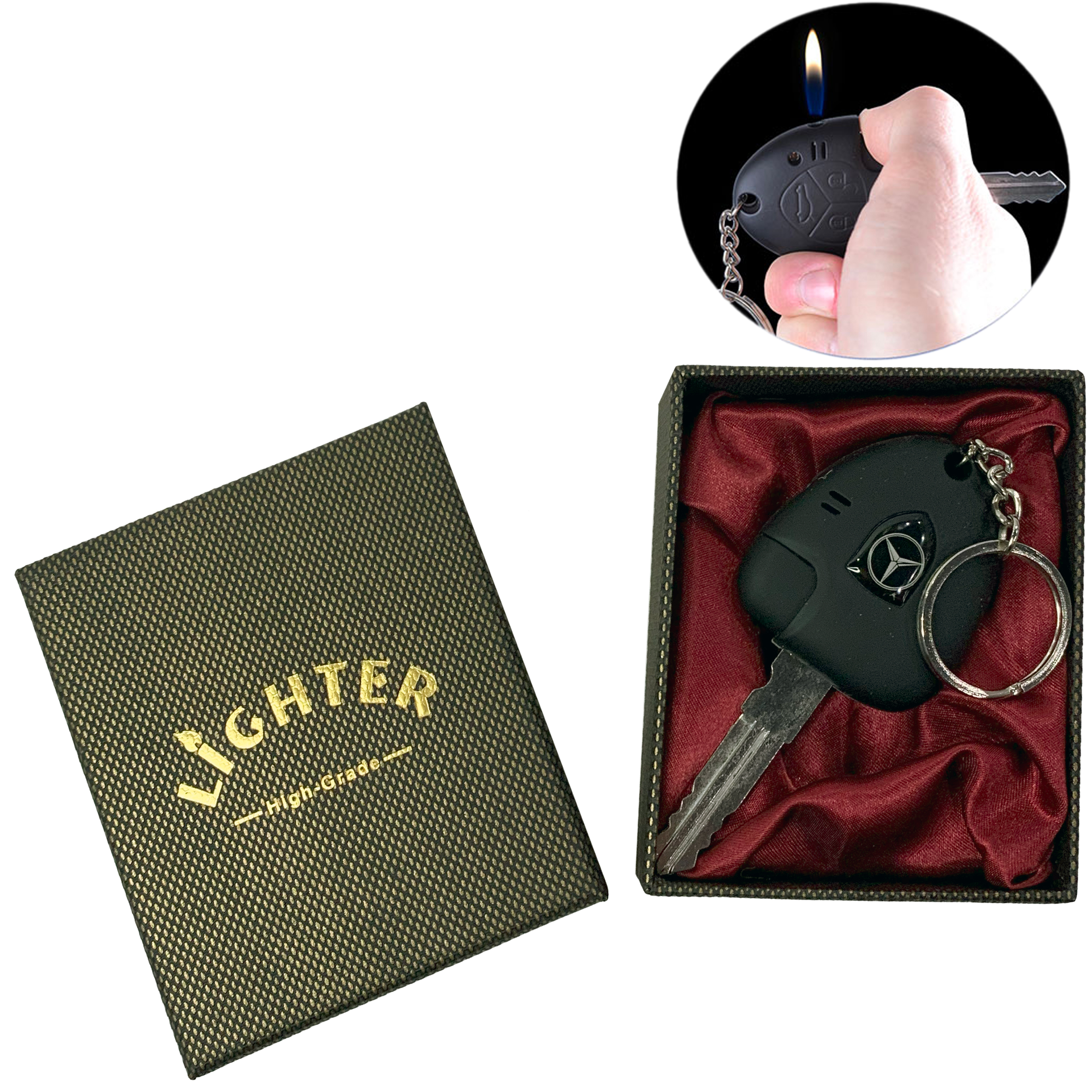 - Уникальная зажигалка в форме ключа от автомобиля Mercedes-Benz.