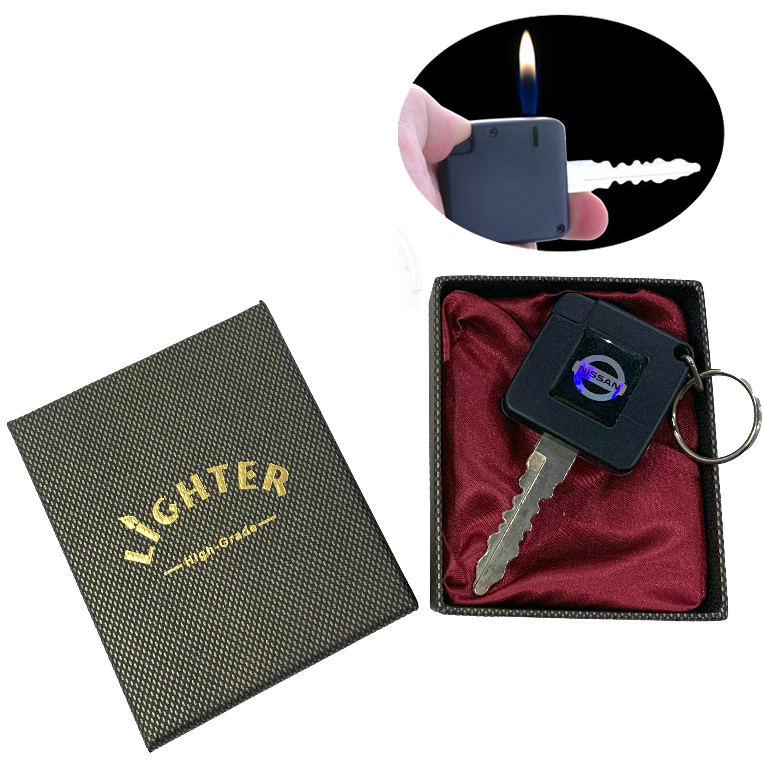 Подарочная зажигалка с брелком Ключ NISSAN (Обычное пламя )
