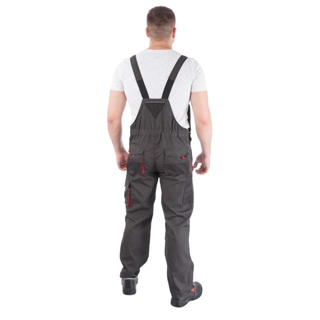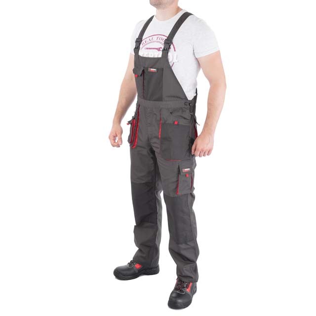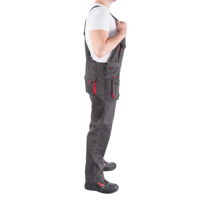 Полукомбинезон пошит из прочного и износостойкого материала, что и куртка с брюками: 80% полиэстер, 20% хлопок с плотностью 260 г/м². Отлично защищают работника от загрязнений и механических повреждений. Множество накладных и прорезных карманов позволяют разгрузить руки мастеру и выполнять работу с удобством и быстрым доступом ко всем инструментам.