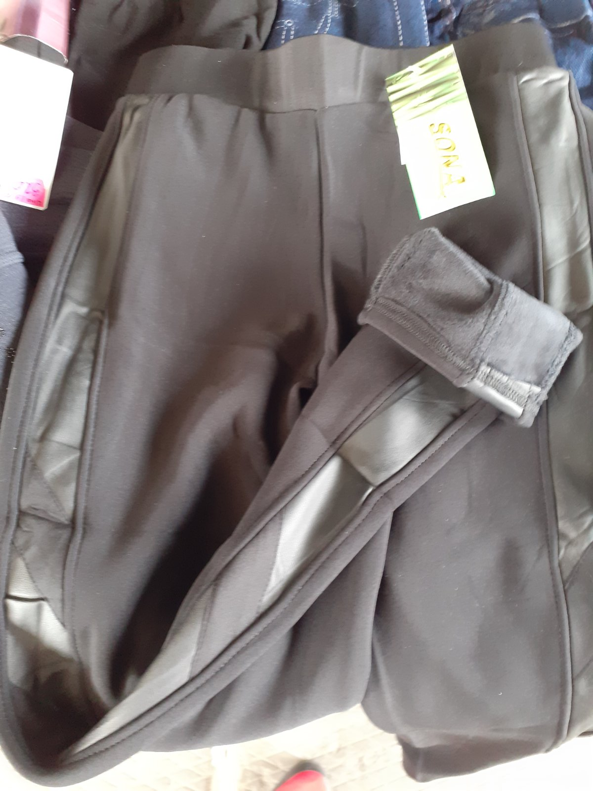 Брюки-лосины женские на меху, с кож. вставками, черные. Sona. размеры S/M, L/XL, 2XL/3XL