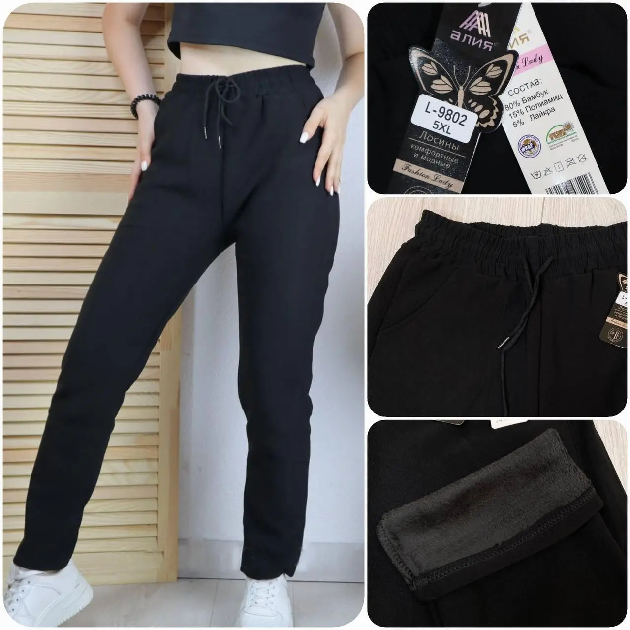 Дуже теплі, щільні штани на хутрі. Спереду та ззаду 2 кишені. Верх – щільна гарна, структурна тканина. Усередині - щільне плюшеве хутро. Гарна посадка.