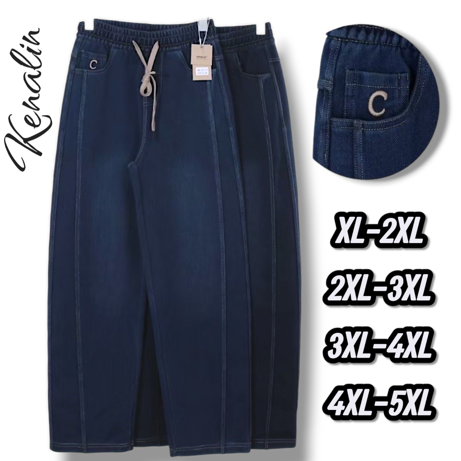 Джегінси багі жіночі на ризинці, демісезонні. Фірми Kenalin. Колір синій, темно синій. Норма. Розміри: XL-5XL