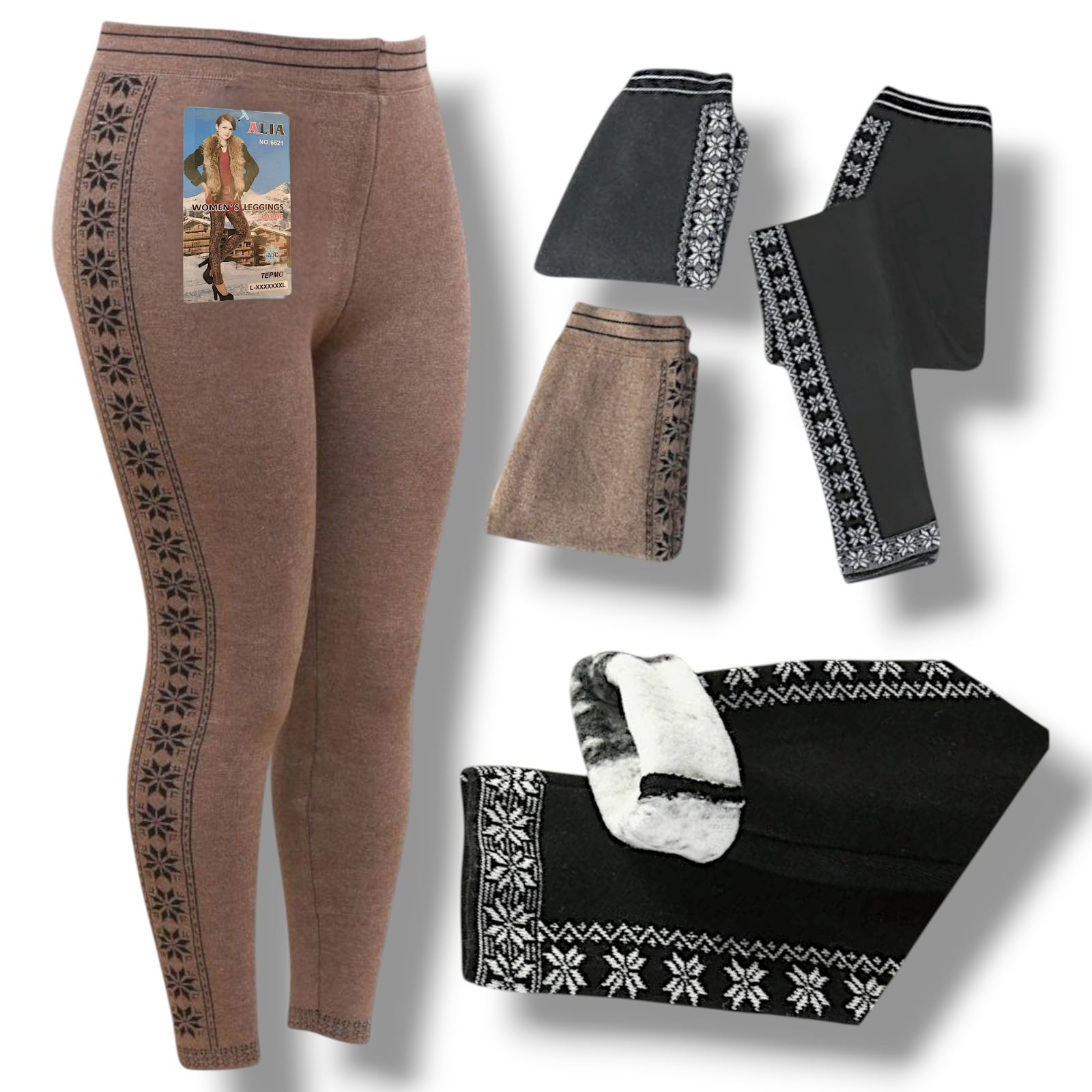Лосины женские теплые бесшовные на меху (Размеры: 52-60) "Шерсть Хух" 77400