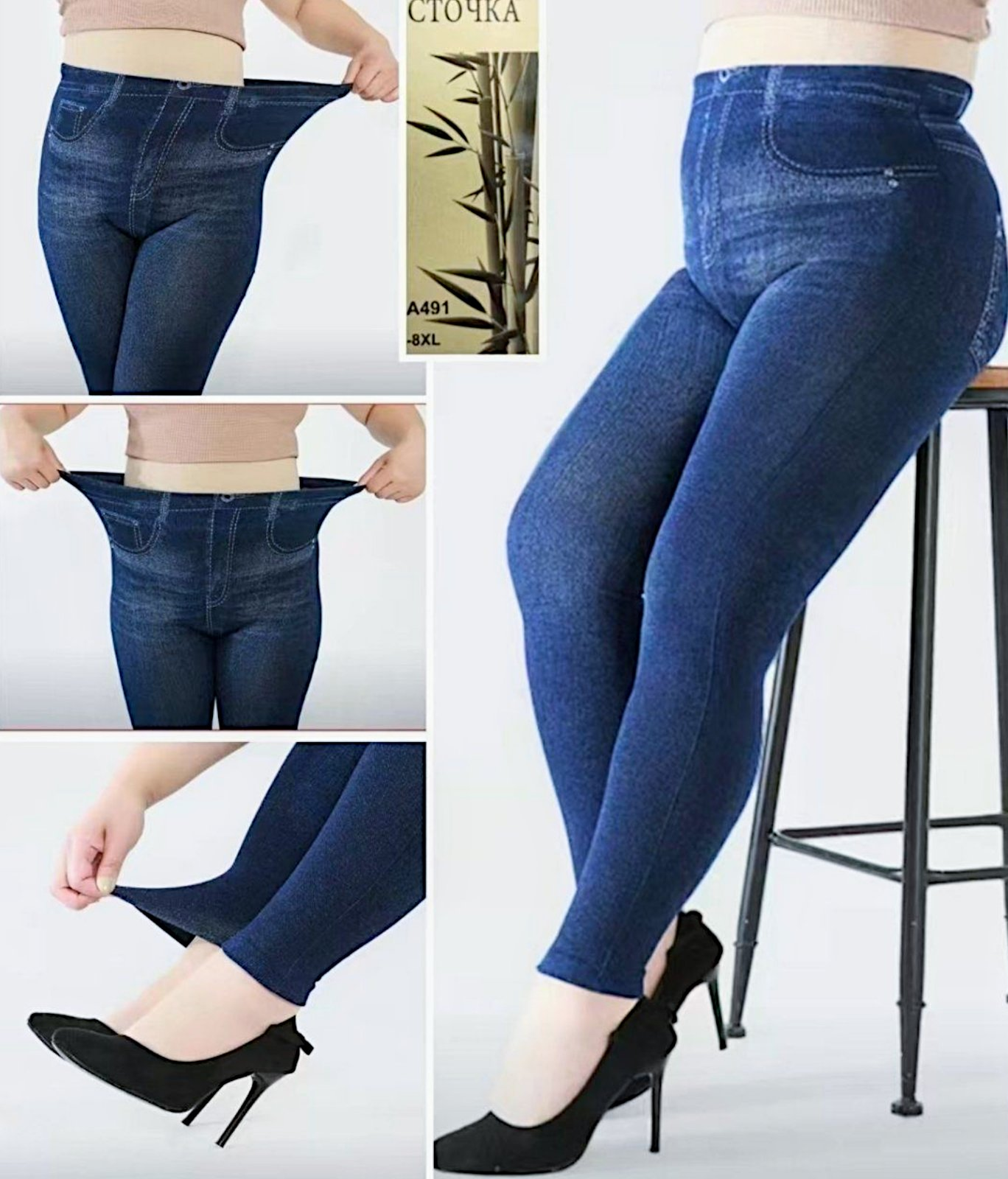 Лосіни жіночі безшовні демісезонні. Фірми Ластівка. Імітація джинс. Батал. Колір синій. Розмір 54-60.