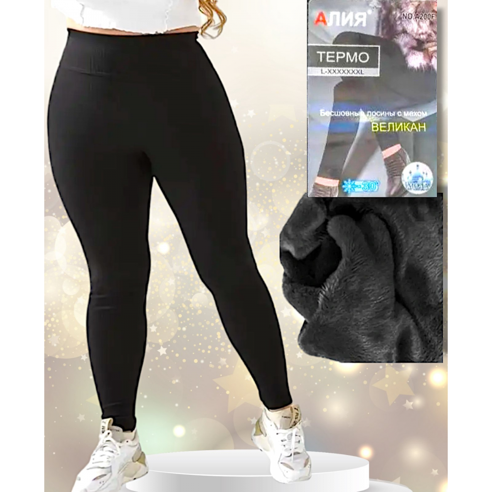 Лосіни жіночі безшовні, теплі в середні на хутрі. Фірми Алія. Колір чорний. Батал. Розмір 54-62
